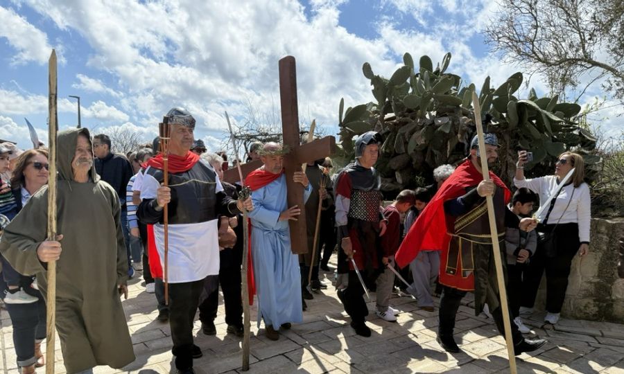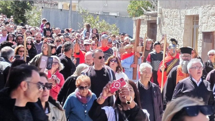 A Good Friday tradition was once again revived in the village of Kathikas, where residents and visitors gathered for a reenactment of Jesus Christ carrying the Holy Cross from the Praetorium to Golgotha.