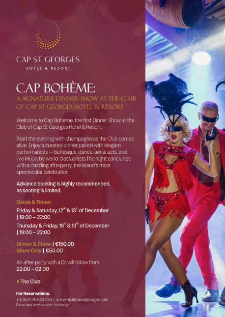 Welcome to Cap Bohème, the first dinner show at the Club of Cap St Georges Hotel & Resort.