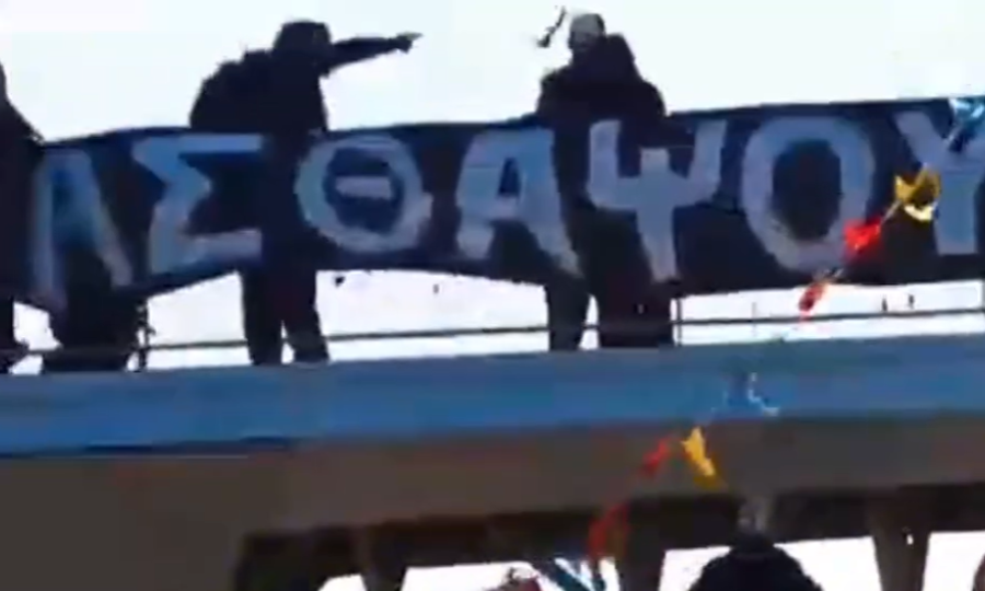 The incident occurred during the height of the parade, with thousands of spectators gathered to enjoy the festivities. The group reportedly took advantage of the crowded, festive atmosphere to climb a central bridge and display a banner reading, “We will bury you at public expense.” Alongside the banner, the group placed mannequins depicting President Nikos Christodoulides, First Lady Filippa Karsera Christodoulides, former presidential office director Charalambos Charalambous and other political figures in a setup meant to resemble a hanging.