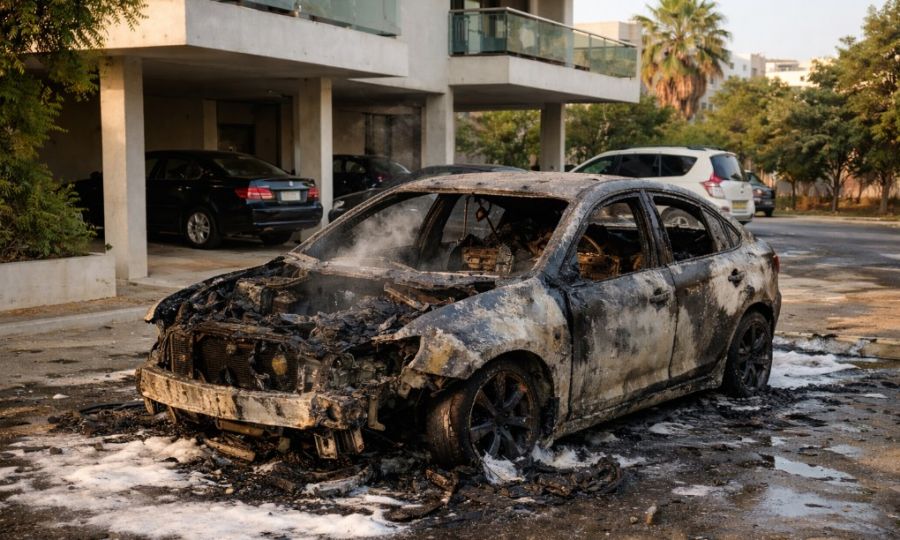 A vehicle was completely destroyed by a fire that broke out Monday afternoon in Ayia Napa, prompting an investigation by multiple authorities. The incident occurred shortly before 4:00 p.m. while the car, owned by a 40-year-old man, was parked in the designated parking area of an apartment complex.