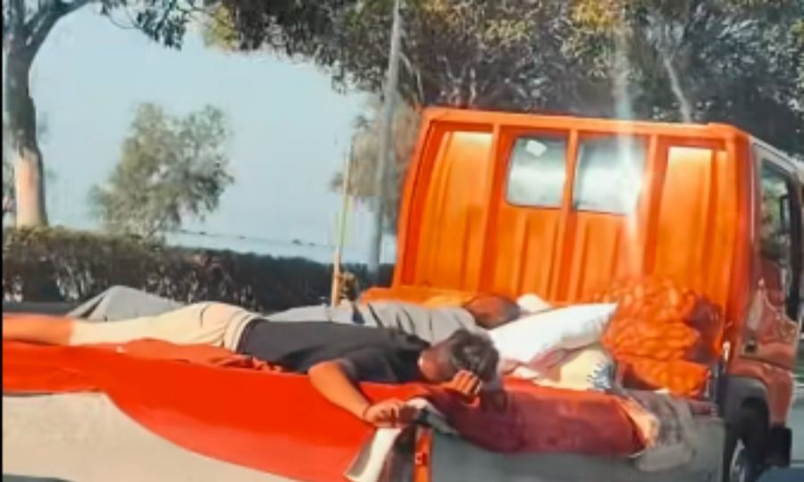 A jaw-dropping scene unfolded on the coastal road of Limassol when two people were spotted lying in the back of a moving small truck, seemingly asleep, in what experts are calling a reckless and illegal act.